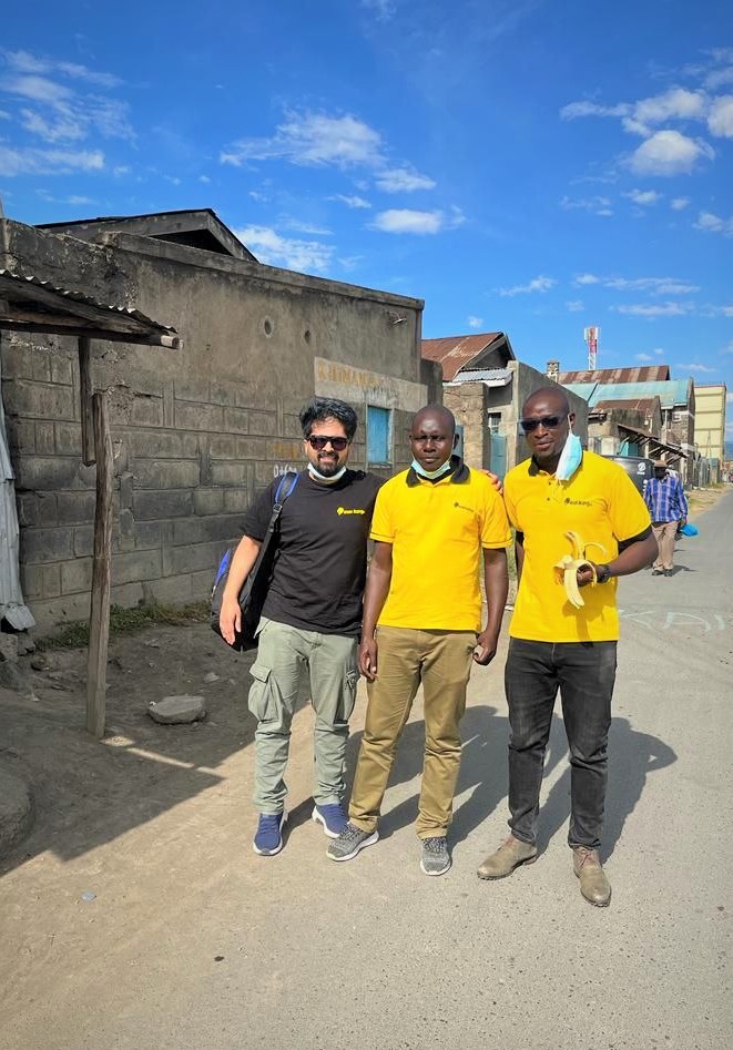 Vinod in the field, with colleagues from Sun King