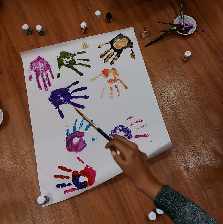 There’s only one desire in all our minds: we want to make this stay. The key to its fulfillment lies right beside us in a colorful box of paints (— after all, art lives on, doesn’t it?). So, we lather our hands with colors of our choice, grab a piece of white chart paper and leave our imprints behind, as though to say: Hello, beautiful world! We’re here. We’re here to stay.